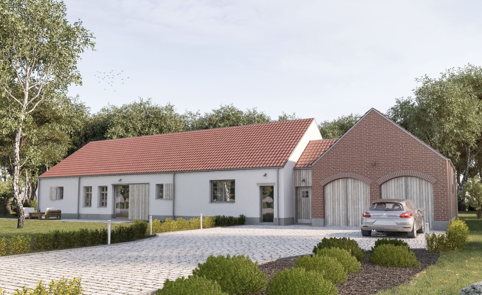 Dom parterowy o pow. 272m2 zlokalizowany na terenie dużego gospodarstwa rolnego. Forma budynku wynikała z chęci Inwestorów do dostosowania gabarytów i charakeru budynku do zlokalizowanych w bezpośrednim sąsiedztwie ceglanych zabudowań gospodarskich. W najbliższych otoczeniu dominują materiały takie jak cegła, kamień, drewno i znalazły one odzwierciedlenia w naszym projekcie. Wewnątrz znalazło się miejsce na przestronne pokoje mieszkalne, salony z jadalnią i kuchnią oraz pracownię malarską właścicielki.