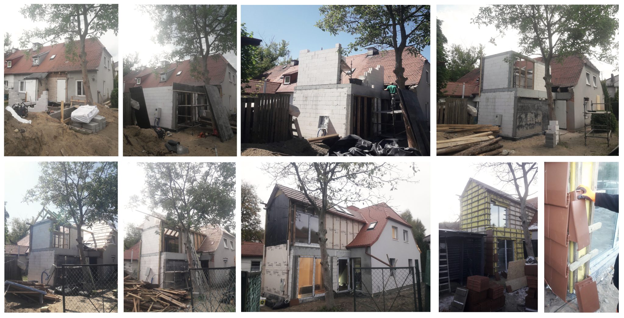 Remont kompleksowy obejmujący częściową termomodernizację wraz z przebudową i rozbudową budynku mieszkalnego jednorodzinnego wraz z zagospodarowaniem działki. Nieruchomość zalicza się do zabudowy historycznej – budynek szeregowy z okresu międzywojennego. Projektowana rozbudowa o nową formę opiera się na prostej idei polegającej na kontrastowym zestawieniu istniejącej formy budynku z nową formą, która nie udaje, że była tam od zawsze. Propozycje materiałowe projektowanej elewacji zakładały jej wykonanie z płyt włókno-cementowych (wizualizacje), żeby finalnie po szeregu uzgodnień z Inwestorem i MKZ pokryć całą dobudowaną część dachówką ceramiczną Actua 10. Kolorystycznie kolor ceramiki nawiązuje do otoczenia – wszechobecna dachówka karpiówka, kolory ciepłe, ceglane, a swoją prostotą podkreślą charakter projektowanej bryły. Rysunek dachówki sprawił, że ślepa ściana będzie stanowiła jedną spójną całość wraz zresztą projektowanego budynku. Forma prostego dachu bez okapu została wybrana celowo w celu podkreślenia prostoty projektowanej formy. Już wkrótce zdjęcia z budowy!