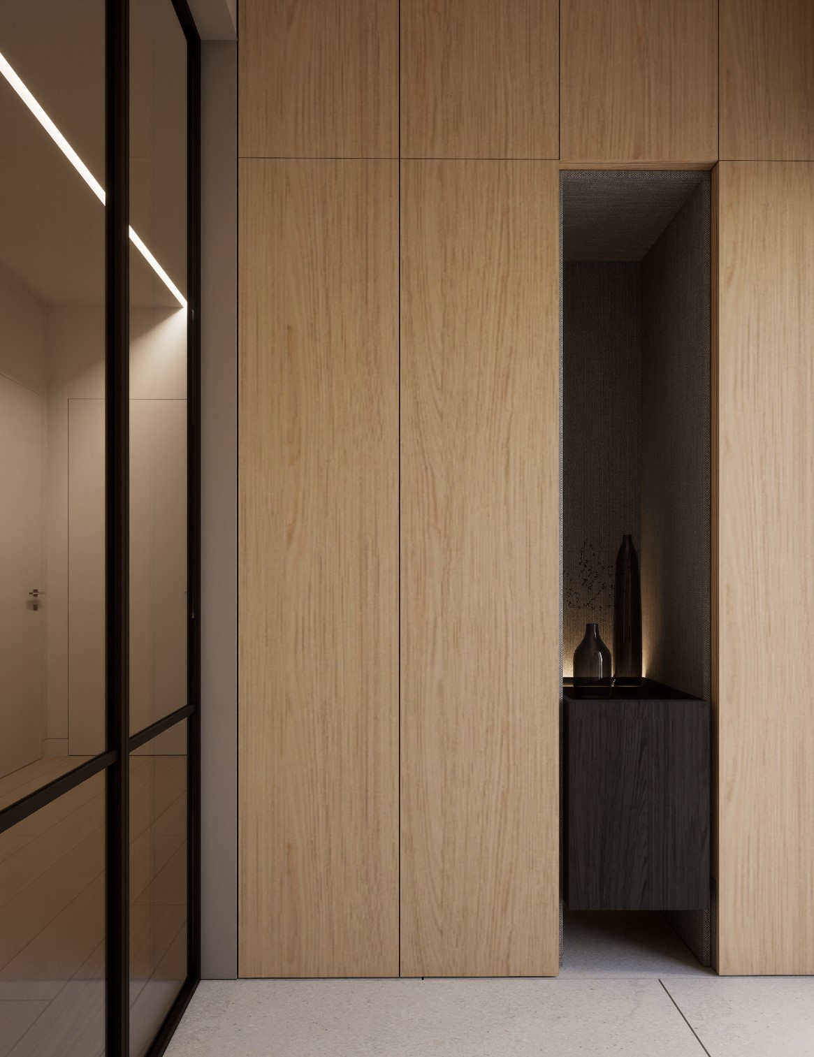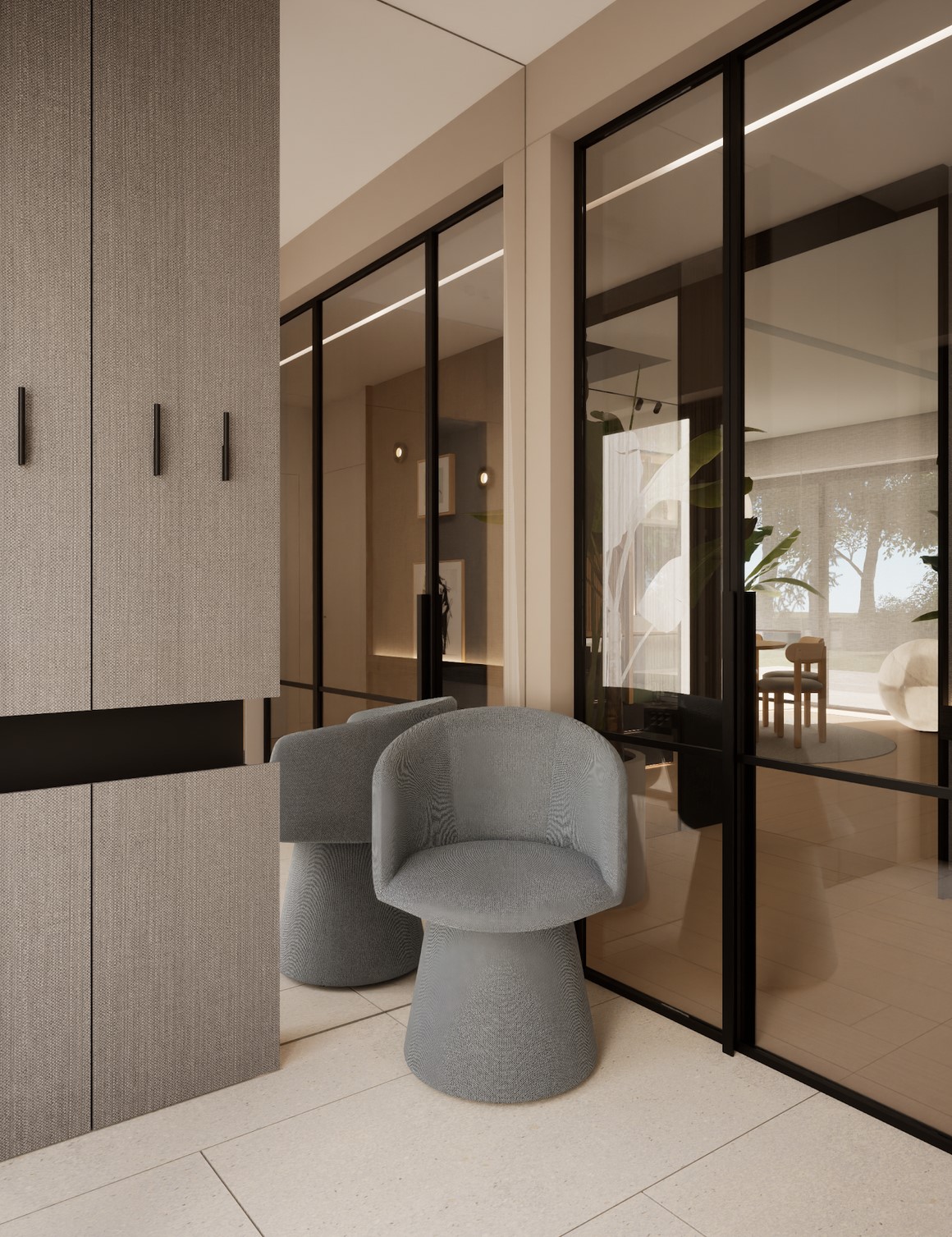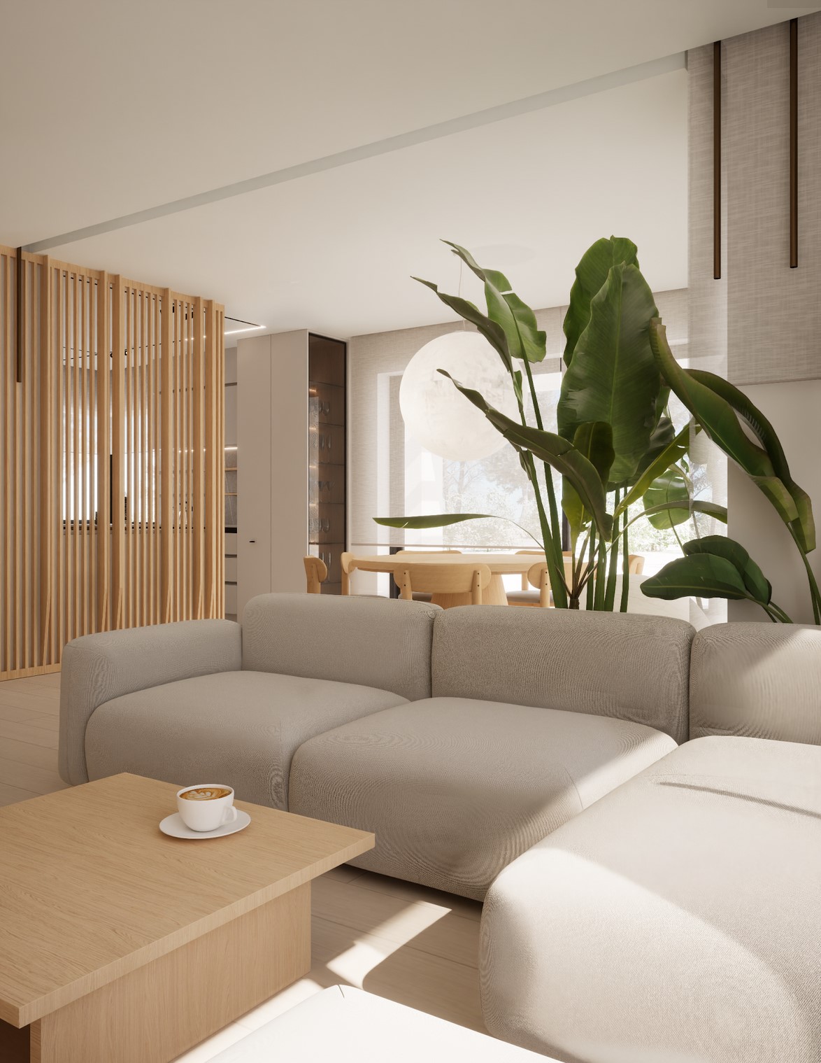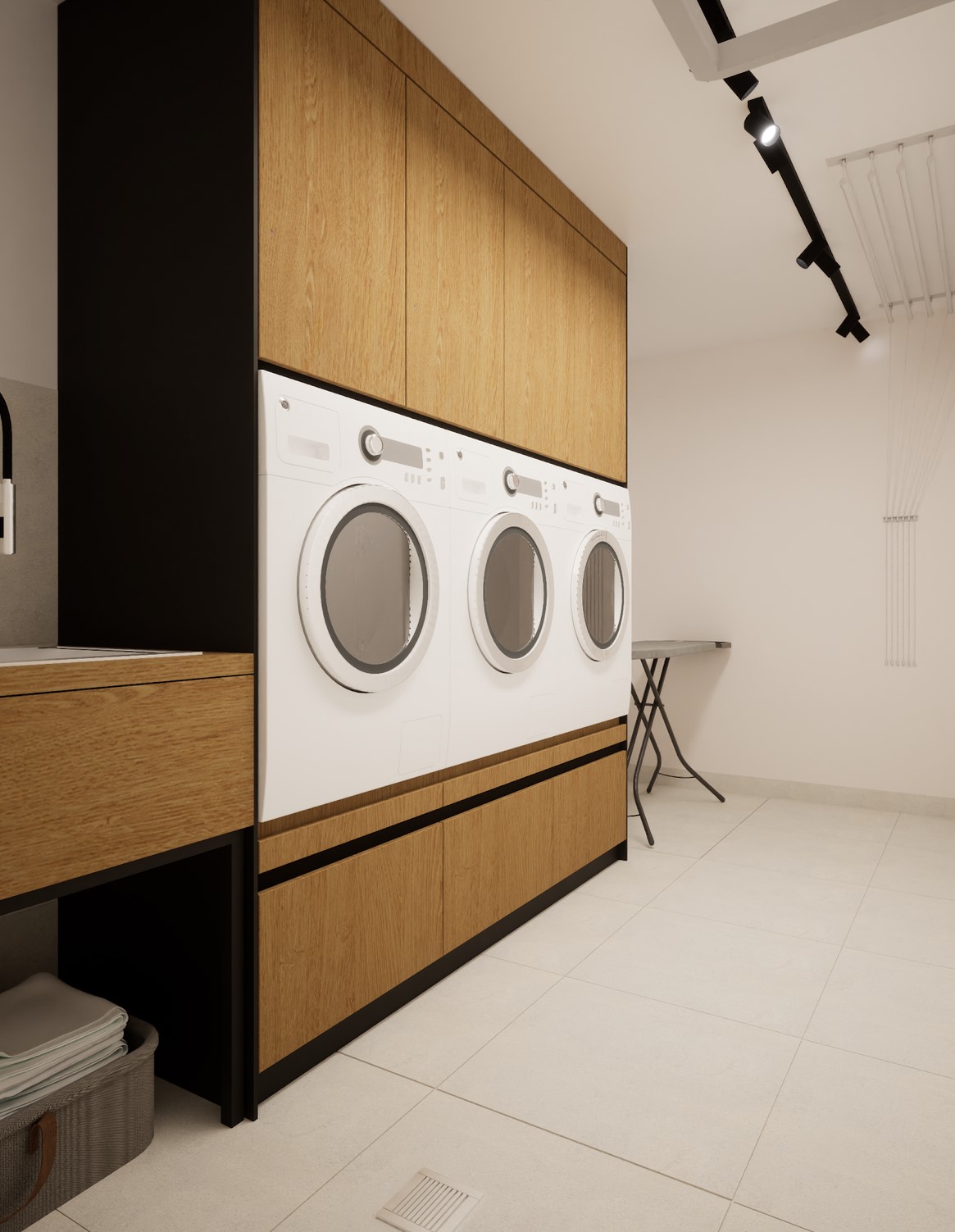 Projekt stworzony z myślą o komforcie i funkcjonalności. Otwarty układ pomieszczeń, jasne wykończenia i naturalne materiały sprawiają, że wnętrze jest przestronne i przyjazne. Przemyślane rozwiązania, takie jak ukryte zabudowy i spójne oświetlenie, podkreślają nowoczesny charakter całości. Idealne miejsce do życia w harmonii z codziennością.